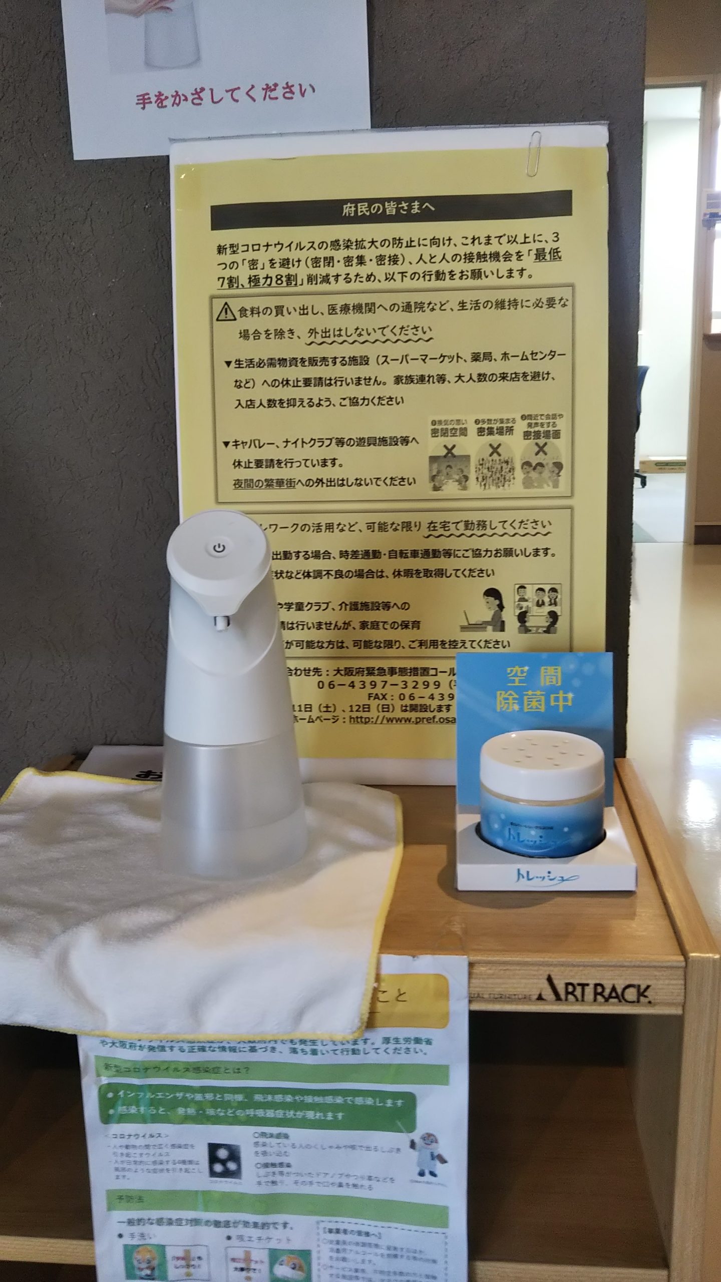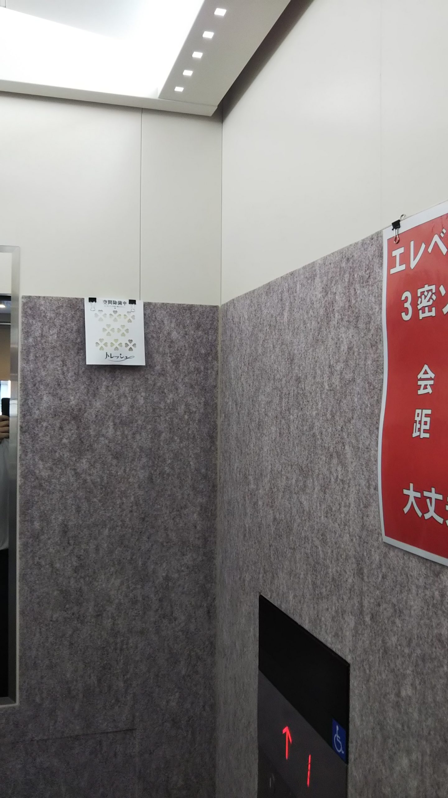 感染症対策として玄関ロビーとエレベーターに設置。
